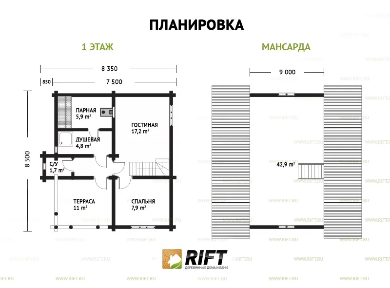 Мансарда — 150 мм.