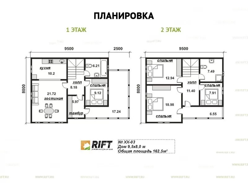 Каркасный дом XX03 площадью 162 м2 (9,5 х 8 м) — современное и просторное решение для комфортного проживания. Благодаря каркасной технологии, строительство осуществляется быстро и экономично. Планировка включает несколько спален, просторную гостиную и кухню-столовую. Современные материалы и качественная отделка гарантируют долговечность и эстетичный внешний вид.