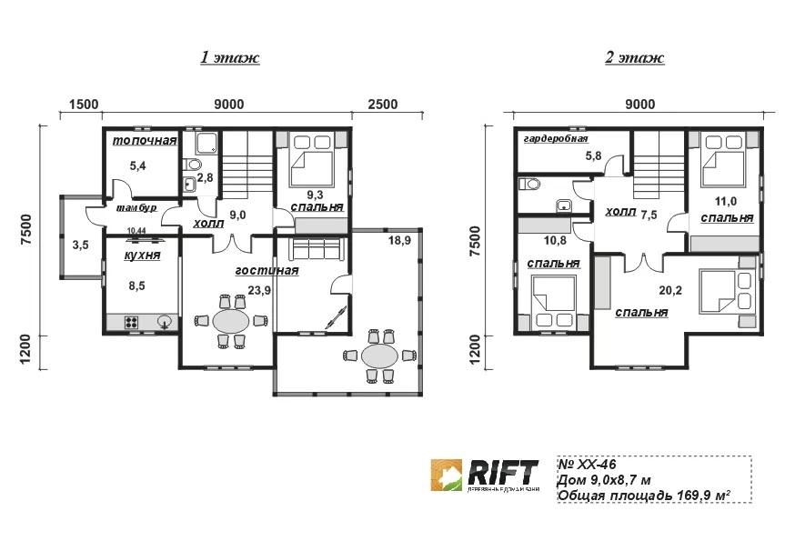 Силовой каркас первого этажа и фронтоны выполняются из качественной доски 150х40 мм.