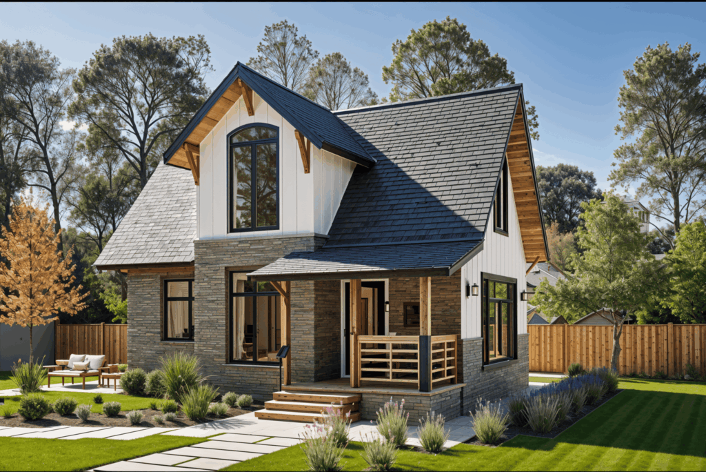 Для тех, кто предпочитает современные технические решения и современный дизайн, подойдет проект в современном стиле. Он характеризуется четкими линиями, использованием стекла и металла, а также сдержанными цветами.