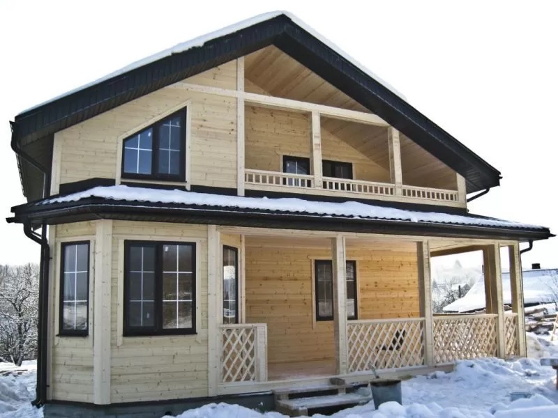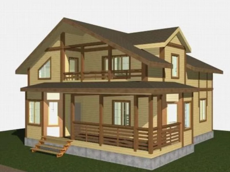 Один из популярных проектов каркасных домов размером 9 на 10 метров – это двухэтажный коттедж с террасой. В нем предусмотрено просторное гостиную, кухня-столовая, три спальни, две ванные комнаты и гардеробная.