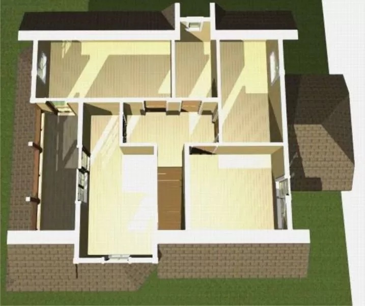 Другой интересный проект – это одноэтажный дом с гаражом. В нем предусмотрена просторная гостиная, кухня, три спальни, ванная комната и отдельный гараж на одну машину.