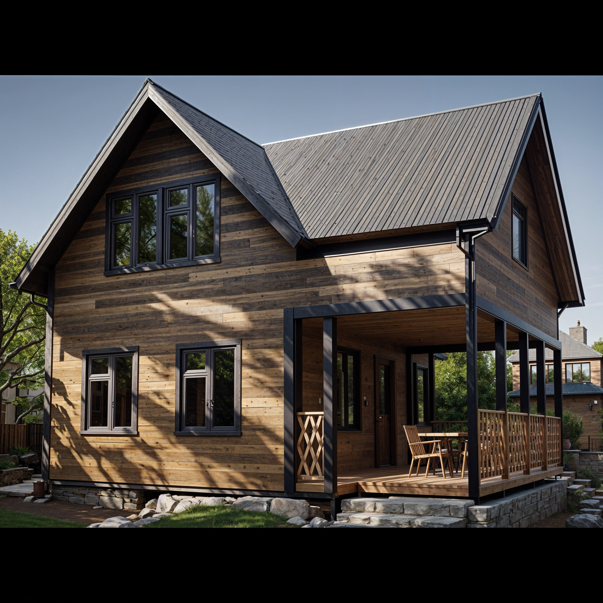 Для внешней отделки используют влагостойкую фанеру, ОСБ-плиты, сайдинг или деревянную вагонку. Внутри дом обшивают гипсокартоном или вагонкой, создавая уютный интерьер. Кровля покрывается металлочерепицей, профнастилом или мягкой кровлей.